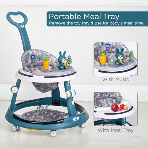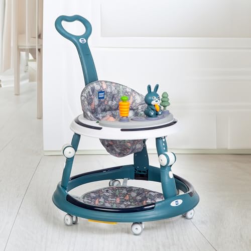 Mee Mee Premium Baby Rocker & Walker 3 in 1-7 Level Adjustable Height, Foot Mat & Musical Activity Tray High Backrest Cushioned Support – 360° Rotational – 6 Months to 2 Years – 15kg (Blue)