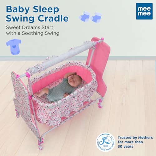 Gentle Swinging Motion: The Mee Mee New Born Baby Sleep Swing Cradle offers a soothing swinging motion to lull your baby into a peaceful sleep, mimicking the comfort of being cradled in your arms.