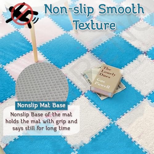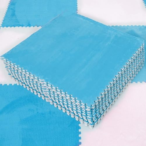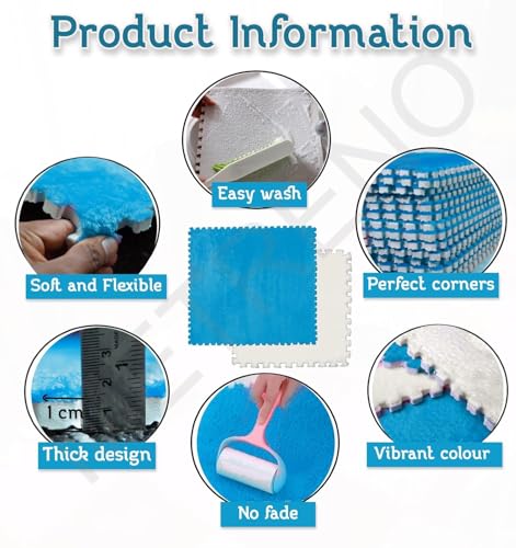 Metreno 6 pcs Kids mats for Floor Soft Plush Foam Babies Puzzle Interlocking Play mats for Crawling Playing Tile mat Carpet Rug for Infants and Toddlers (Blue + White, 62 * 62 * 1cm -10mm)
