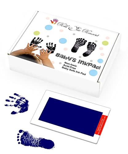 Mold Your Memories Baby Hand and Foot Ink Impression Kit. Non Touch, Non Toxic Ink Pad (0-6 Months, Blue)