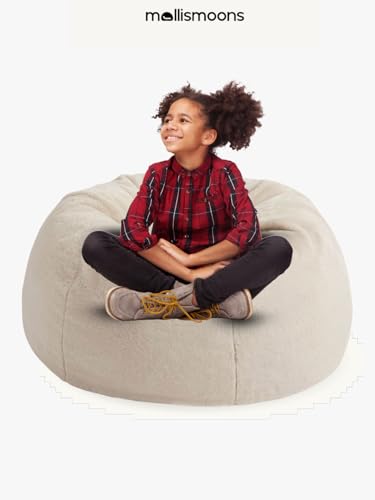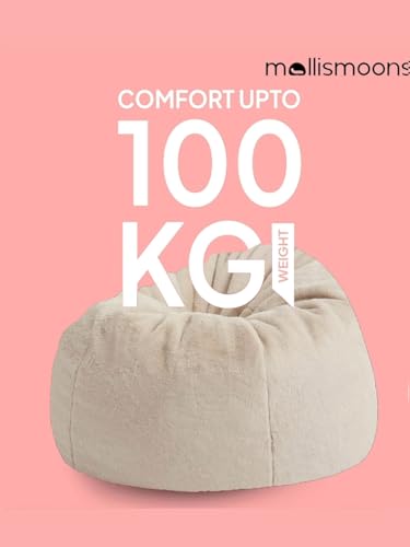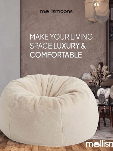 Mollismoons Bean Bag XXXL Size for Adults & Kids Fur bin Bag Luxury Bean Bag Chair (Ivory, Bean Bag Filled with Beans (no Asselbly Required))