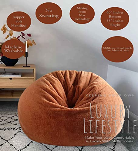 Mollismoons Bean Bag XXXL Size for Adults & Kids Fur Bin Bag Luxury Bean Bag Chair (Mango, Bean Bag Filled with Beans (No Asselbly Required))