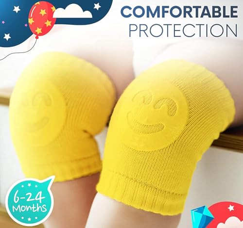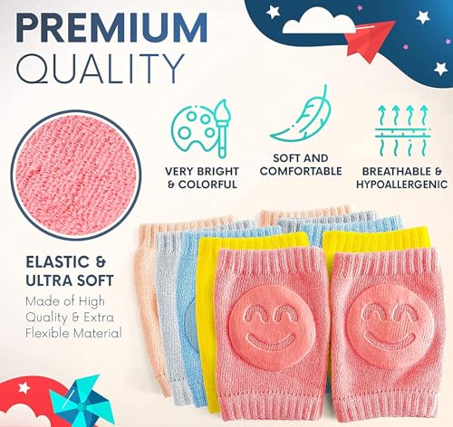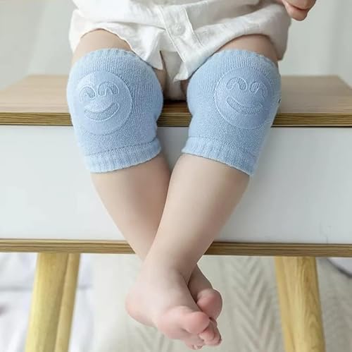 MOMITTLE – Pack Of 2 Pair Baby Smiley Knee Pads For Crawling, Anti-Slip Padded Stretchable Elastic Cotton Soft Breathable Comfortable Knee Cap Elbow Safety Protector Random Color,Sky Blue