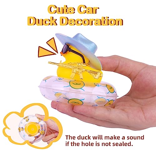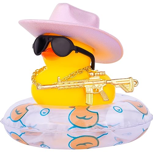MuMyer Cowboy Duck for Cars, Rubber Duck for Car Dashboard, Cool Duck Car Ornaments Accessories with Mini Holographic Cowboy Hat Swim Tube Necklace Sunglasses and Special Prop(Pink&T)