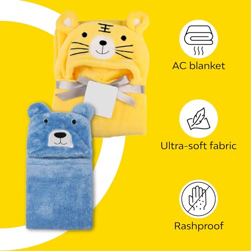 MY NEWBORN by 10 CLUB 3-in-1 Hooded Baby Blanket Wrapper – Set of 2 (Yellow & Blue) | All Season Soft Wrap for New Born | Soft Skin Friendly Baby Wrapper | Baby Blankets Newborn 0-24 Months | Baby Shower Gift