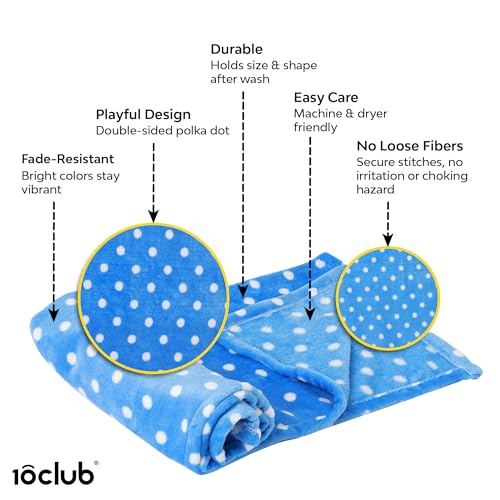 MyNewborn by 10club Polka Dot Sherpa Fleece Baby Blanket | for Baby Girl, Boy, Newborn, Nursery | All Season, AC Blanket |0-12 M | 76×100 cm 240 GSM (Blue)