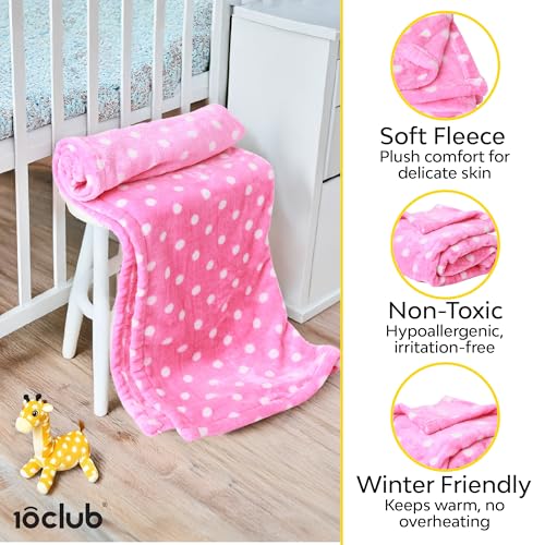 MyNewborn by 10club Polka Dot Sherpa Fleece Baby Blanket | for Baby Girl, Boy, Newborn, Nursery | All Season, AC Blanket |0-12 M | 76×100 cm 240 GSM (Pink)