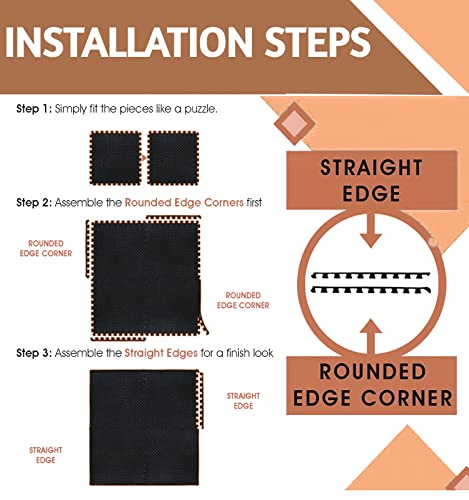 [WOOD FLOOR MAT FOR LIVING] The durable Wood Grain Floor Mats come with attachable border, interlocking design, simple to put together in minutes over any hard, flat surface . Also comes with edges, you can cut it with scissors to DIY a new area