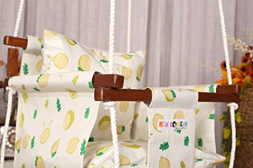 SET : 1 Swing , 2 Pillows (Micro Recron Filing) for Back Support and Seat ,2 (S type Hook) to Adjust Height ,1 Wooden seat with Cotton Cover that Gives Complete Comfort to Your Kid.