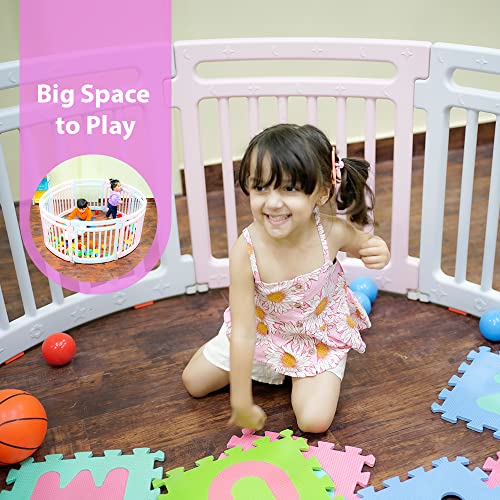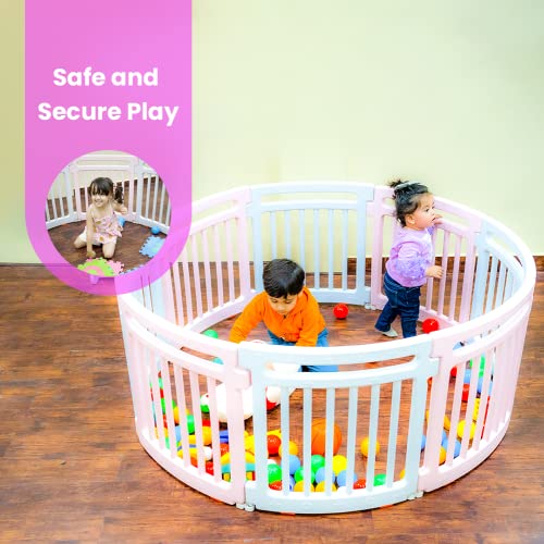 OK Play 8 Panel Playpen For Kids | Play Yard | Baby Fence | Perfect for Home, School & Playground | Easy Assemble | Anti Slip | Indoor Outdoor Games | Easy Storage | Safe & Fun Activity Toy | 3Months+
