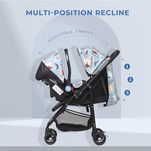 POLKA TOTS Click Clack Travel System Baby Stroller & Pram Infant Car Seat For Kids|Travel Friendly|Safe, Easy To Use Stroller For 0-3 Years|Stroller & Car Seat Combo(Rainbow Print, Multicolor)