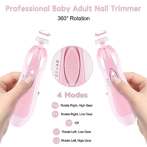[Safe and Effective]: Compared to the traditional nail clipper, this baby nail file electric is powered by 2AA batteries (not included), and with 4 adjustable speed, which is more safe to trim and polish baby’s finger toes and toes quickly, no harm to baby skin
