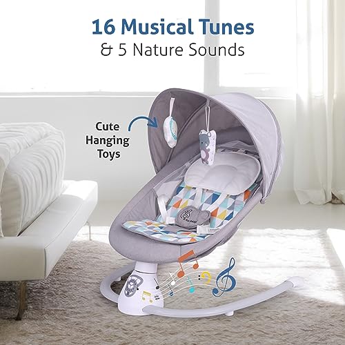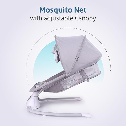 R for Rabbit Cocoon The Smart Auto Swing, Adjustable Rocking Chair with Music, Hanging Toys, Mosquito Net, Electric Baby Bouncer seat for Newborn Baby, Infant (Grey Multi)
