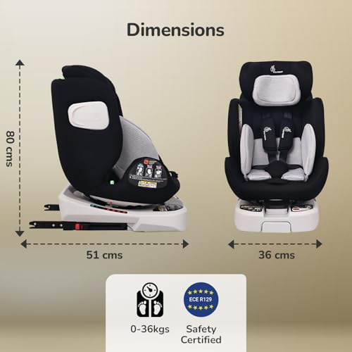 R for Rabbit Jack N Jill ISOFIX Plus i-Size Baby Car Seat Convertible 360 Rotatable for Kids of 0 to 12 Years Age Anti Rollover Support Leg with 5 Point Safety Harness ECE R129 Certified (Black Grey)