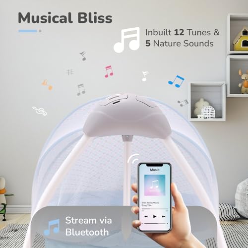Soothing Music & Volume Controller: R For Rabbit Lullabies Automatic Swing cradle has 18 tunes & 6 natures soothing music, which can be controlled by volume controller, it will soothe your baby to sleep at any time any place
