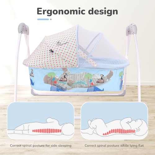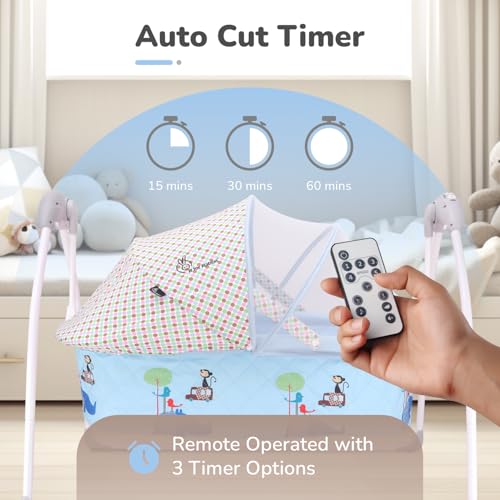 R for Rabbit Lullabies Baby Cradle Automatic Swing with 5 Point Safety Harness, Remote Control, Mosquito Net, Timer, Soothing Music for New Born Kids Age 0-2 Years Weight Upto 12 Kg (Blue)