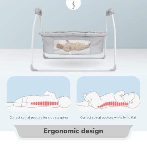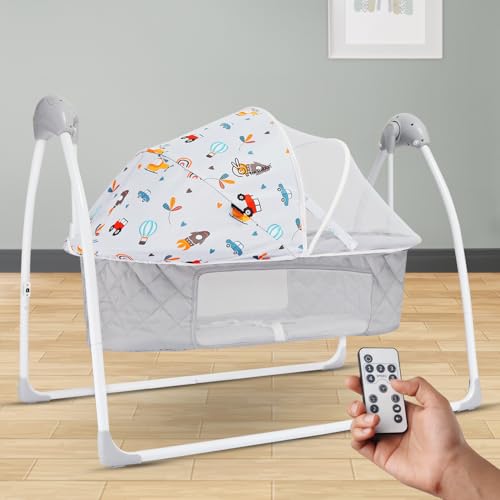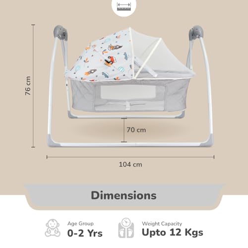 R for Rabbit Lullabies Plus Electric Baby Cradle Automatic Swing with Remote Control, Bluetooth, Soothing Music, Smart Timer & Mosquito Net for New Born Kids Age 0-2 Year Weight Upto 12 KG (Grey)
