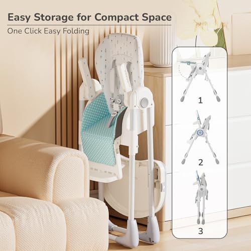 7-Level Heigh Adjustment: This baby high chair grows with baby and can be adjusted as per baby’s comfort up-to 6 different levels of height.