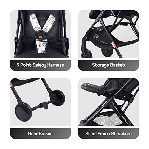 R for Rabbit Pocket Stroller Lite Stroller for Kids | Portable Travel Friendly Pre Installed Baby Trolley Pram for Newborn Boys & Girls of Age 0-3 Years (Black White)