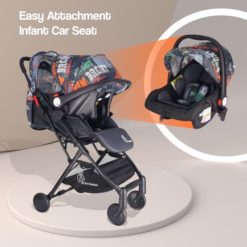 R for Rabbit Pocket Stroller Lite Travel System for Baby Stroller & Pram + Infant Car Seat for Kids, Travel Friendly Compact Fold for 0-3 Years Babies|Quick Fold & Sturdy| (Denim Grey)