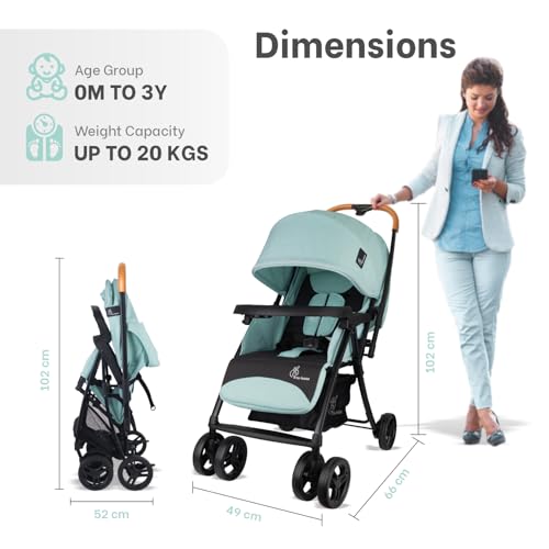 R for Rabbit Poppins Joy Stylish Baby Stroller | Pram for Kids with Reversible Handle | New Born Babies Stroller for 0 to 3 Years Boy and Girl (Green Black)