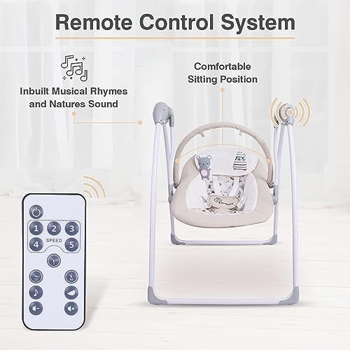 R for Rabbit Snicker Automatic Electric Swing for Kids, New Born Baby Jhula with Remote Controlled 5 Speed Level, Smart Timer, Natural Soothing Music & Hanging Toy (Beige)