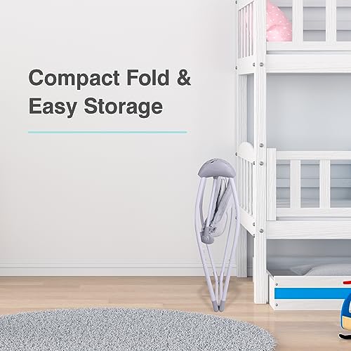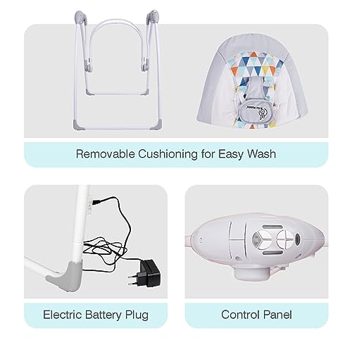 R for Rabbit Snicker Automatic Electric Swing/Jhula for Kids New Born Baby with Remote Controlled 5 Speed Level, Smart Timer, Natural Soothing Music & Hanging Toy,Grey Steel Frame, 60D x 73W x 79H Cm