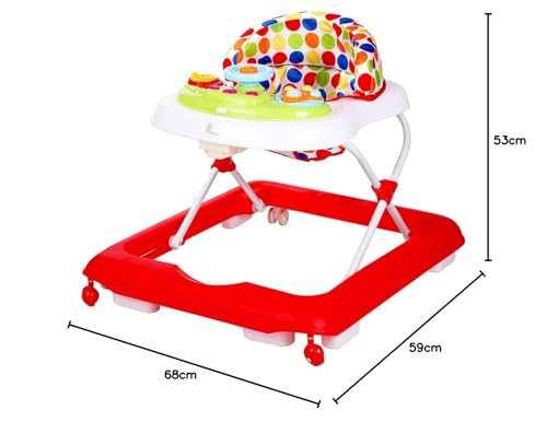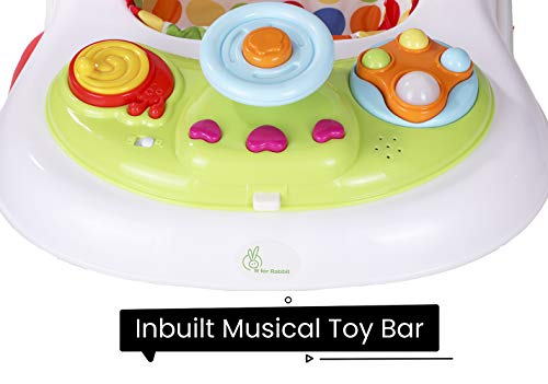 R for Rabbit Step Up Anti-Fall Walker with Height Adjustment, Musical Toy & Soft Cushioning Seat Perfect Baby Walker for 02 Years Babies Removable Toy Bar Safe up to 15kg – (Red)