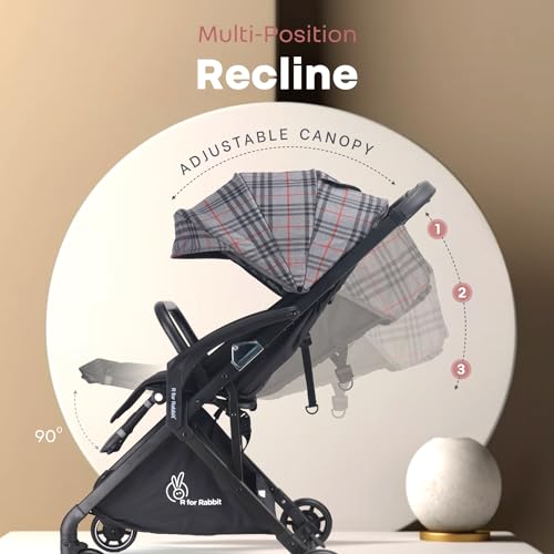 R for Rabbit Street Smart Aero Light Weight Newborn Baby Stroller|Aluminum Frame Pram with One Hand Collapsible Fold|Travel Friendly Stroller for 0-3 Years for Babies Grey Stripes|