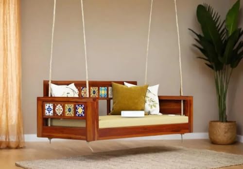 Primary Material: Sheesham Wood | Secondary Material: Solid MDF/Plywood Depending On Availability | Product Name: Wooden Tiles Swing Jhula