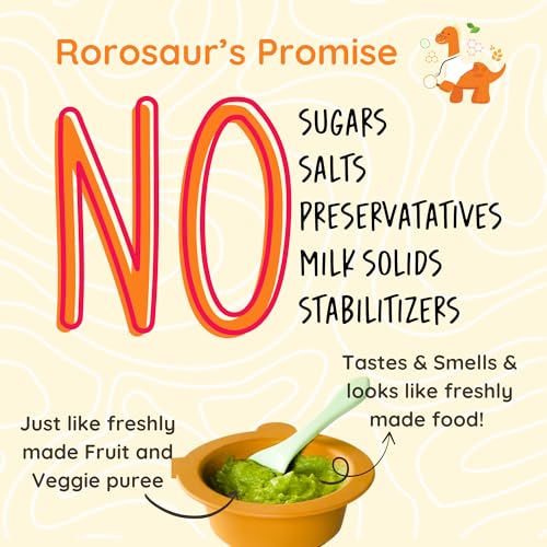 Rorosaur Baby Food – Snack with Purees of Fruits & Veggies – Ready to Eat Cereal & Porridge for Little One | Rich in Vitamins & Minerals | No Added Sugars/Salts/Preservatives – Pack of 6 (100g each)