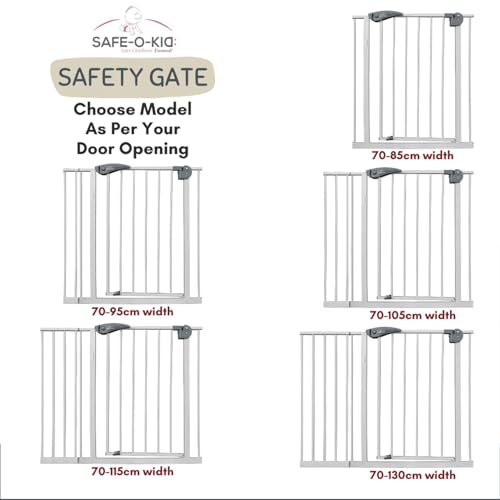 Safe-O-Kid Adjustable 1-Year Warranty Baby Safety Gate (75-95 cm) Durable Metal Child Gate for Kids, Dog Gate, Baby Gate with 2-Way Auto-Close, Secret Lock, No Drill Required (Grey)