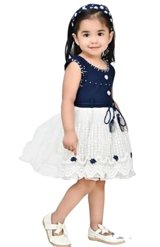Shyamcollections Baby Girl’s Designer Frock Dress with Soft Net Sleevless Baby Doll Denim Frock Knee Length Size 3 Months Up to 7 Year (2-3 Years)