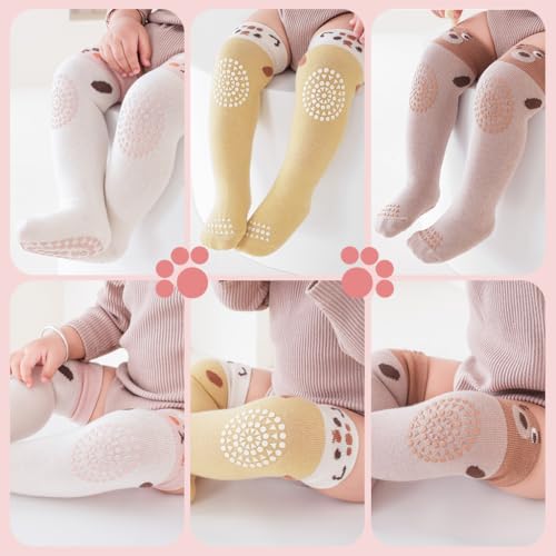 PROTECTIVE DESIGN FOR TODDLERS: Each pair in this set of toddlers socks features anti-slip and protective silicone patches on knee area and sole to ensure safety and comfort as your little one explores their world. The anti-slip silicone patches on the soles provide added traction when your little one walks on smooth hardwood or tile floors. Additionally, the protective silicone patches on the knee area offer a cushioning effect, safeguarding your toddler’s knees during crawls or outdoor play.