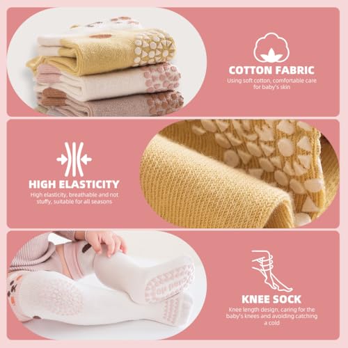 KNEE-HIGH LENGTH: Designed to reach your babys knees, these baby socks set offer extra warmth and protection, especially useful in cooler months. The knee-high length helps keep the socks for girls in place, ensuring they do not slip off your babys feet and legs, providing all day comfort.