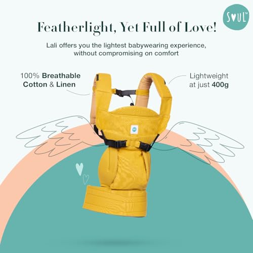 SOULSLINGS 4-in-1 Lali Baby Carrier Bag – Mustard – Cotton | Compact & Lightweight (400g) | Adjustable for 0-24 Months (4-15kg) | Machine Washable & Handwashable | Breastfeeding Friendly