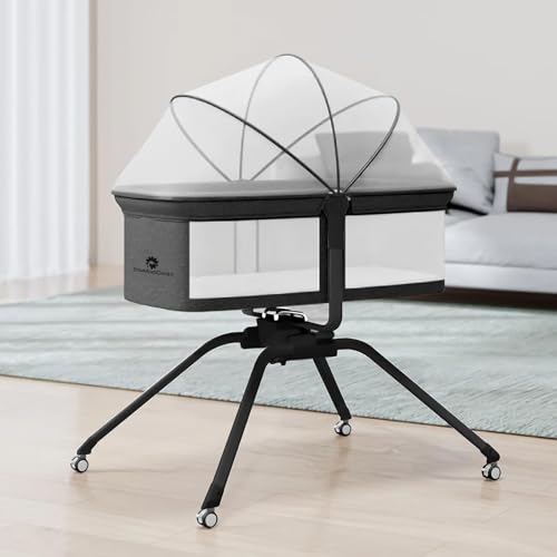 👶 INNOVATIVE ROCKING SYSTEM : The even rocking rhythm recalls the time in the mother’s belly in the child’s memory. The lock lever allows you to stop and stabilize the cot with the baby inside