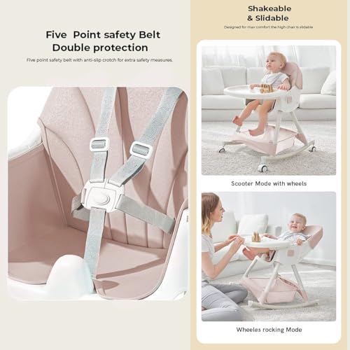 StarAndDaisy Baby High Chair Recline Highchair/Baby Feeding Chair with Height Adjustable Seate/Upgraded Kids High Chair with Wheel and PU Cushion pad (Light Pink)