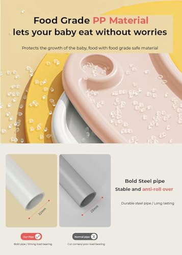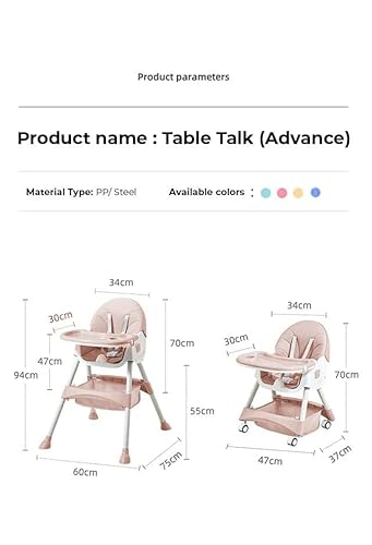 ADJUSTABLE & SPACE-SAVING – Removable tray with 3 adjustable positions that suitable for different stage of baby?s growth. SAFE & REASSURING – This baby chair made of PP Plastic Table, Metal Frame. This chair has Cushion and Wheel option.