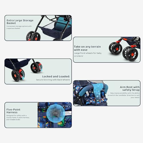 👶 COMFOR & SAFETY : StarAndDaisy Sunrise baby stroller comes with 3-point Safety Blet Ensures secure restraint for the baby and Easy-to-use for quick stops Breake system.