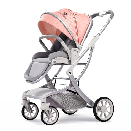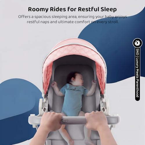 StarAndDaisy Baby Stroller/Stylish Newborn Pram with Extra Large Seating Space, Safety Harness, Adjustable Backrest & Easy & One Touch Foldable / 0 to 3 Years Boy & Girl.. (Pink)