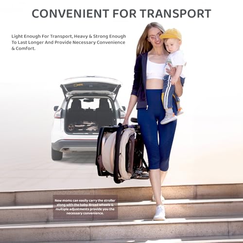 Crafted with aluminium alloy tubes and coated with matt finish gold paint gives the stroller aesthetic looks and also ensures it is resistant to corrosion and mechanically durable and stable