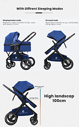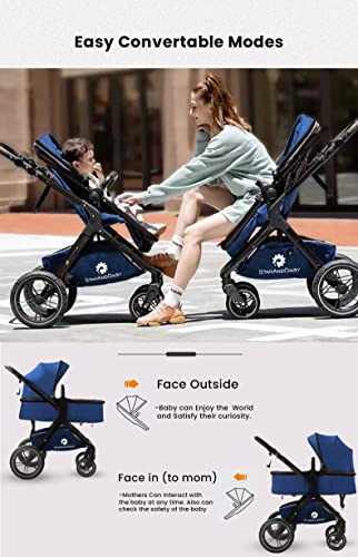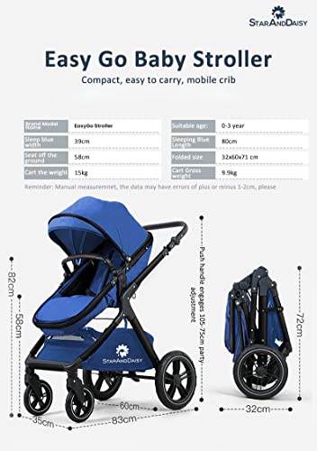 StarAndDaisy Easy Go Baby Stroller For 0-3Y Girls&Boys,Luxury Look,One Push Foldable Desing,5 Point Safety Belt,Comfortable&Washable Fabric And Reversible&Convertible Kids Pram(Blue With Black Tubes)