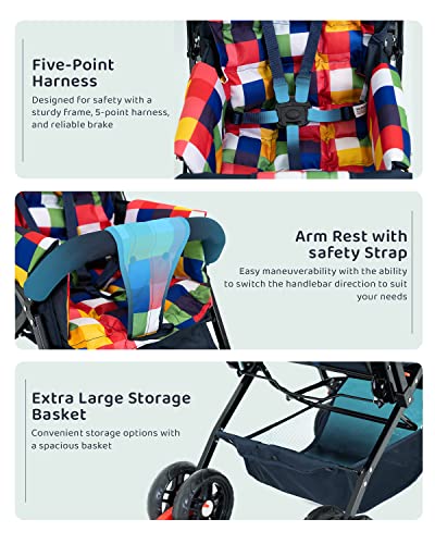 StarAndDaisy Stroller for Baby Boy & Girl 0 to 3 Years / Baby Stroller with Lightweight / Foldable Pram for Baby with 3-Point Safety Harness, Adjustable Backrest, 360° Swivel Wheel, Large Storage, Reversible Handlebar, Extended Mosquito Net (Vibgyor)