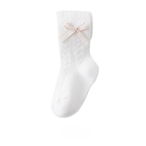 SYGA Baby Girls’ Anti-Mosquito Cotton Thin Mesh Stockings with Bow Design Size L 1-2 Years(White)