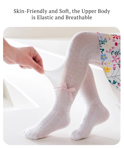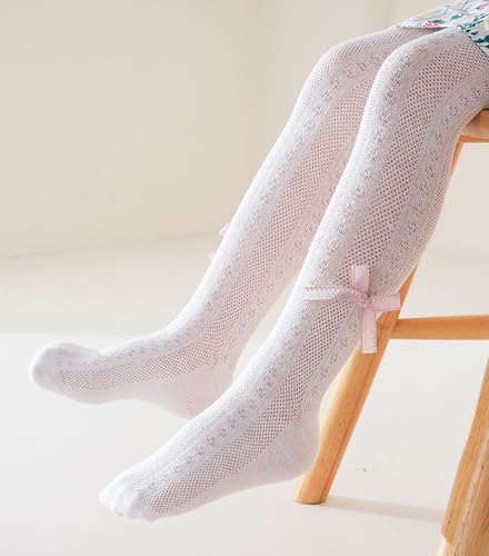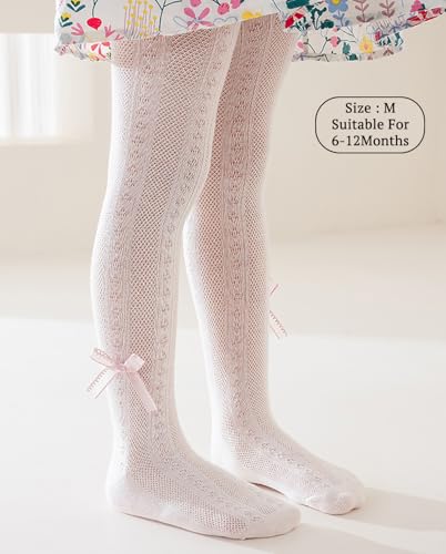 SYGA Baby Girls’ Anti-Mosquito Cotton Thin Mesh Stockings with Bow Design, Size M 6-12 Months(Pink)