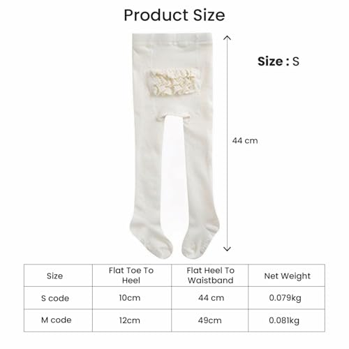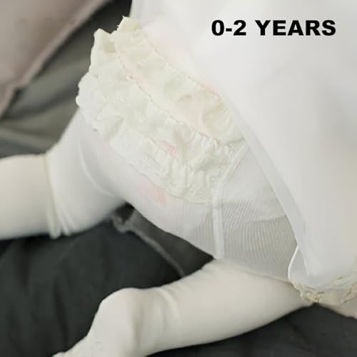 SYGA Baby Lace Cotton Stockings Adorable Girls’ Tights, Soft and Stretchy, Size S 0-2 Years old (White)