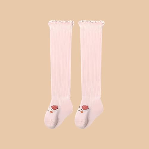 SYGA Baby Long Socks Cotton, Over the Knee, No Tightness, High-Top, Cute Design – M Size, Suitable for 6-12 Months (Pink)