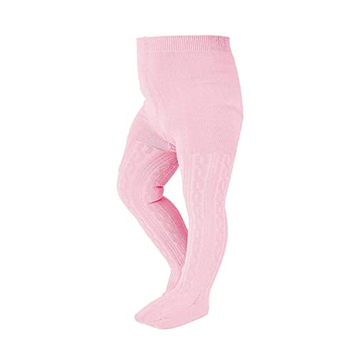 SYGA Baby Tights For Girls Soft Cotton Infant Leggings Toddler Solid Knit Socks Newborn Warm Crochet Pants Stockings – Pink 12-24 Months