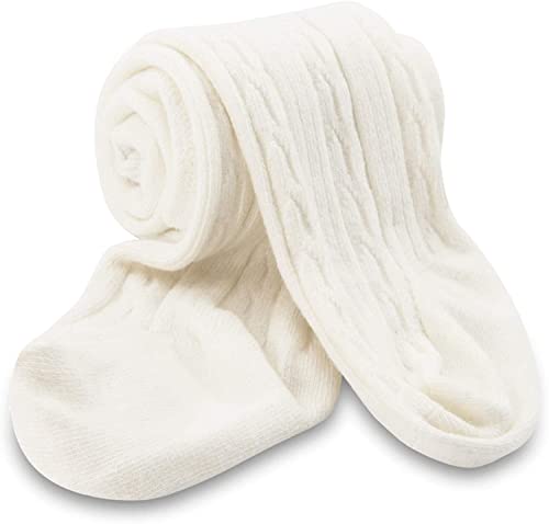 SYGA Baby Tights For Girls Soft Cotton Infant Leggings Toddler Solid Knit Socks Newborn Warm Crochet Pants Stockings – White 12-24 Months